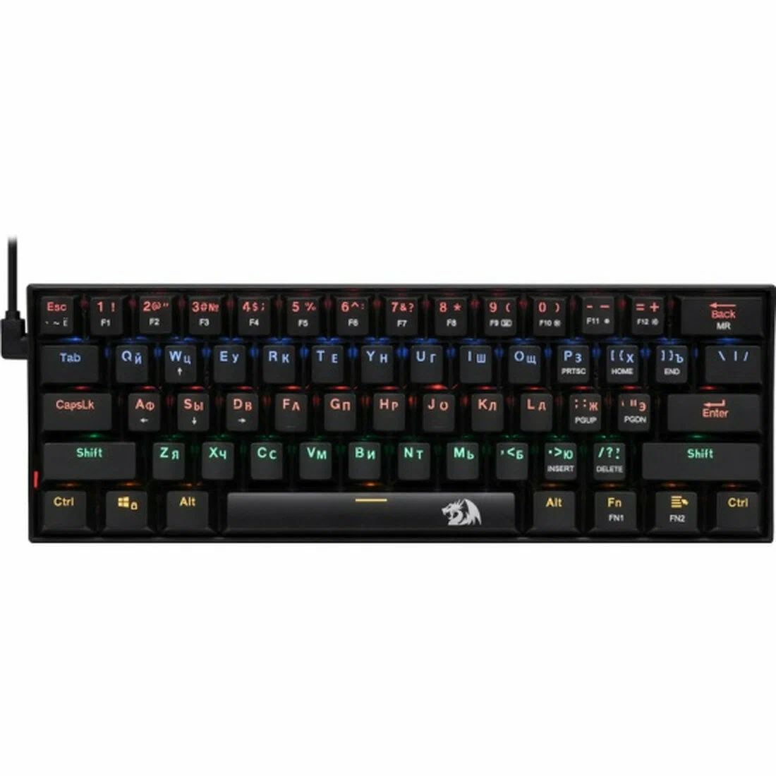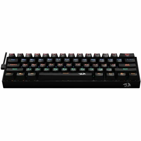 Проводная клавиатура Redragon Lakshmi RU Black обеспечивает стабильное и быстрое подключение к вашему компьютеру или ноутбуку через интерфейс USB. Клавиатура оснащена механическими переключателями Outemu Red switch, которые обеспечивают быстрое и точное нажатие клавиш. Это гарантирует комфорт и надежность при длительной работе или игре. Redragon Lakshmi RU Black имеет 61 клавишу, включая 12 дополнительных функциональных клавиш, что обеспечивает удобство и гибкость в использовании. Подсветка клавиш позволяет комфортно работать или играть в условиях недостаточного освещения. Redragon Lakshmi RU Black относится к категории клавиатуры-чехол, что делает ее компактной и удобной для переноски. TKL дизайн клавиатуры позволяет сэкономить место на рабочем столе, сохраняя при этом все необходимые клавиши.
