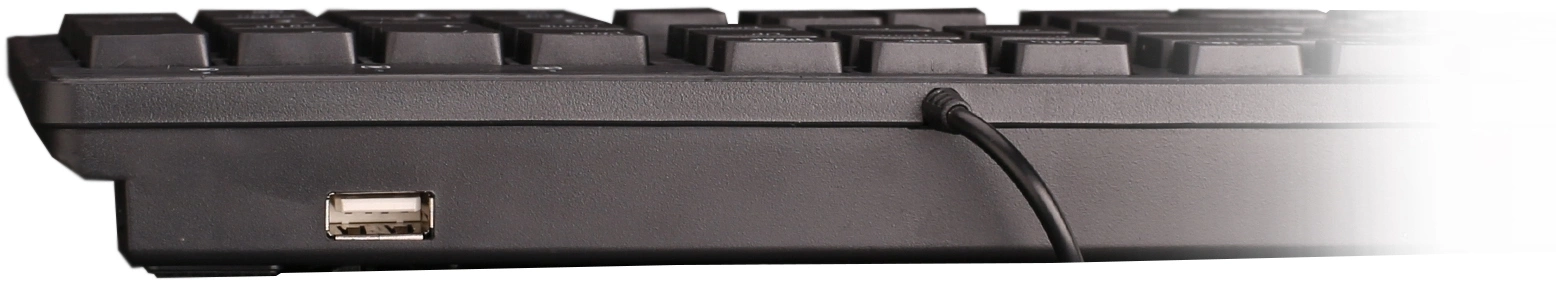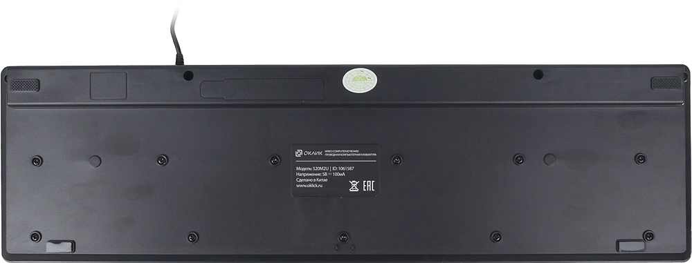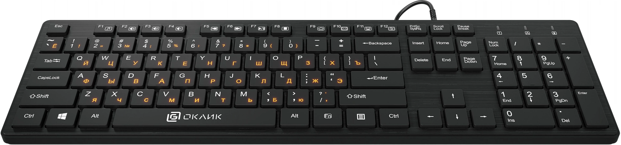Компьютерная клавиатура Oklick 520M2U – выбор пользователей, которые проводят много времени за компьютером и ценят удобство и функциональность в работе.Эта модель оснащена мультимедийным функционалом, с помощью которого пользователь управляет музыкой, видео и другими мультимедийными приложениями с клавиатуры. Дополнительные интернет-клавиши открывают доступ к веб-страницам с одного клика.Oklick 520M2U выполнена в slim-дизайне, который делает клавиатуру стильной и современной. Благодаря компактным размерам устройство не займет много места на рабочем столе.Особенность модели – 2 USB-порта. Длина кабеля клавиатуры – 1,5 метра, что удобно при подключении к компьютеру или ноутбуку.Модель доступна в чёрном цвете. Кириллица на клавишах выделена оранжевым цветом, яркость которого облегчает набор текста на русском языке. Английские буквы – белые. Клавиши клавиатуры имеют квадратную форму. Каждая клавиша отличается четким ходом и приятным тактильным ощущением.