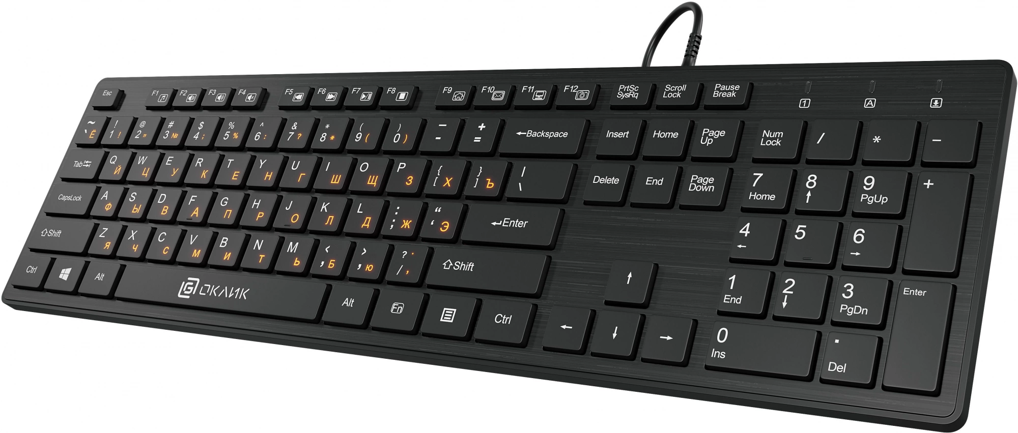 Клавиатура Oklick 520M2U проводная, USB, черный + черный [520M2U]