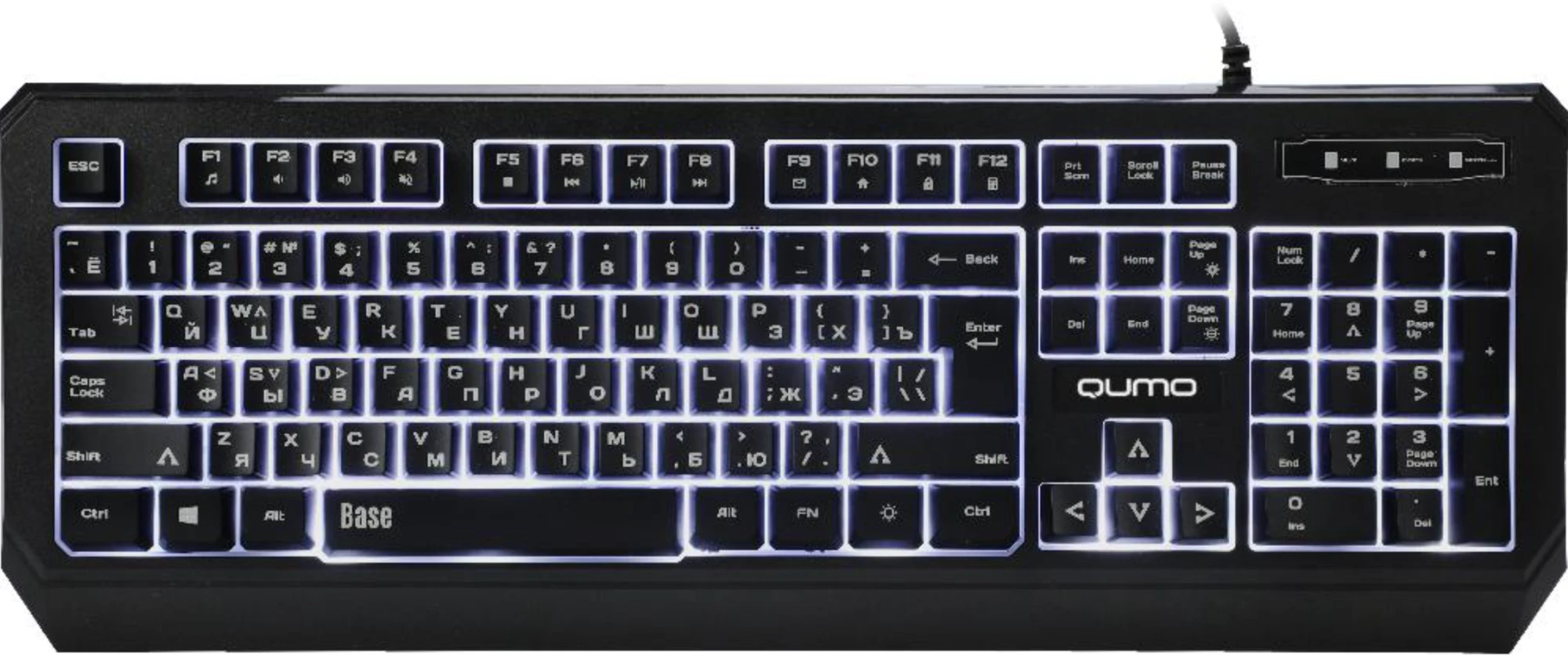 Клавиатура Qumo office BASE K59, проводная, 104 клавиши, подсветка белого цвета, плетеный кабель, golden USB [K59]