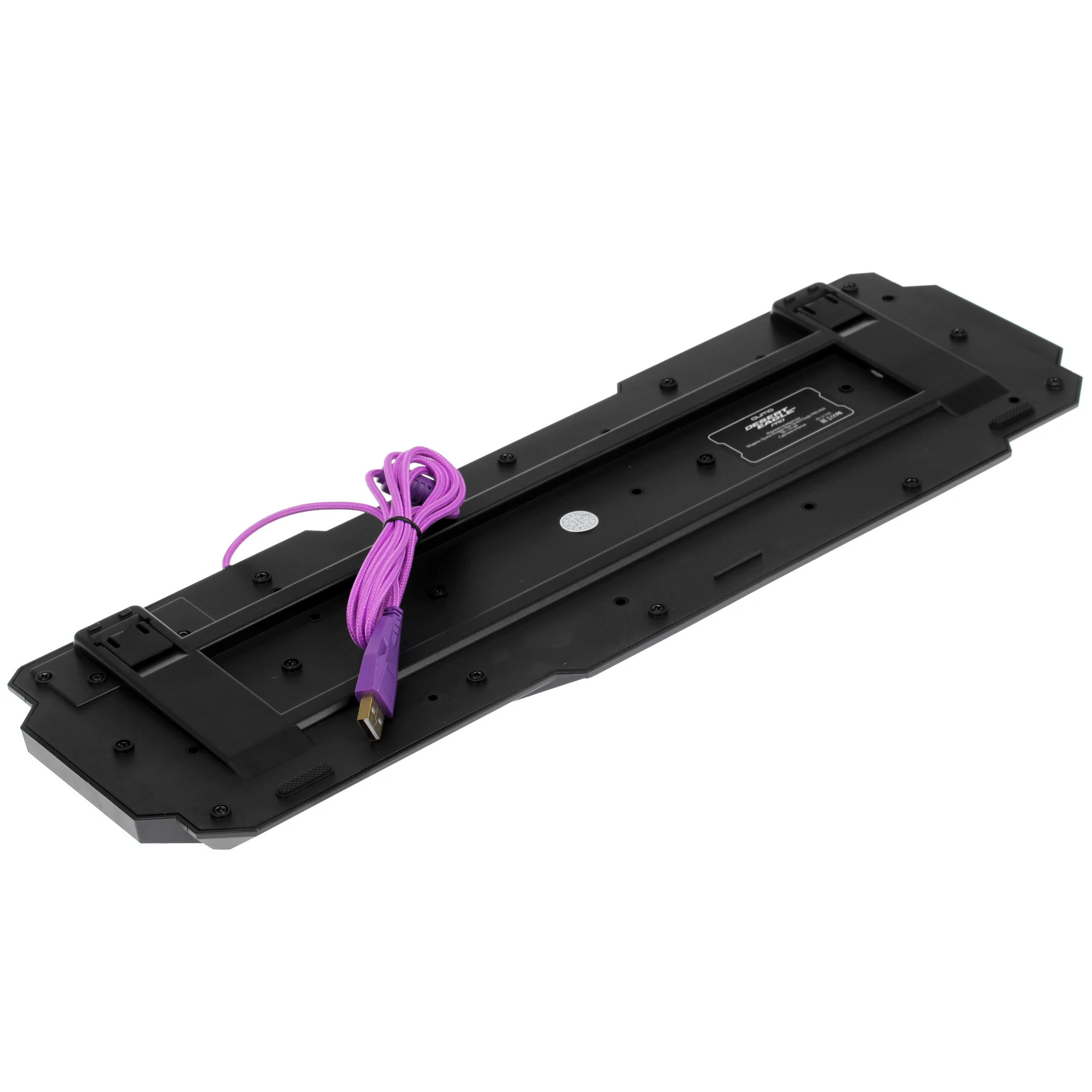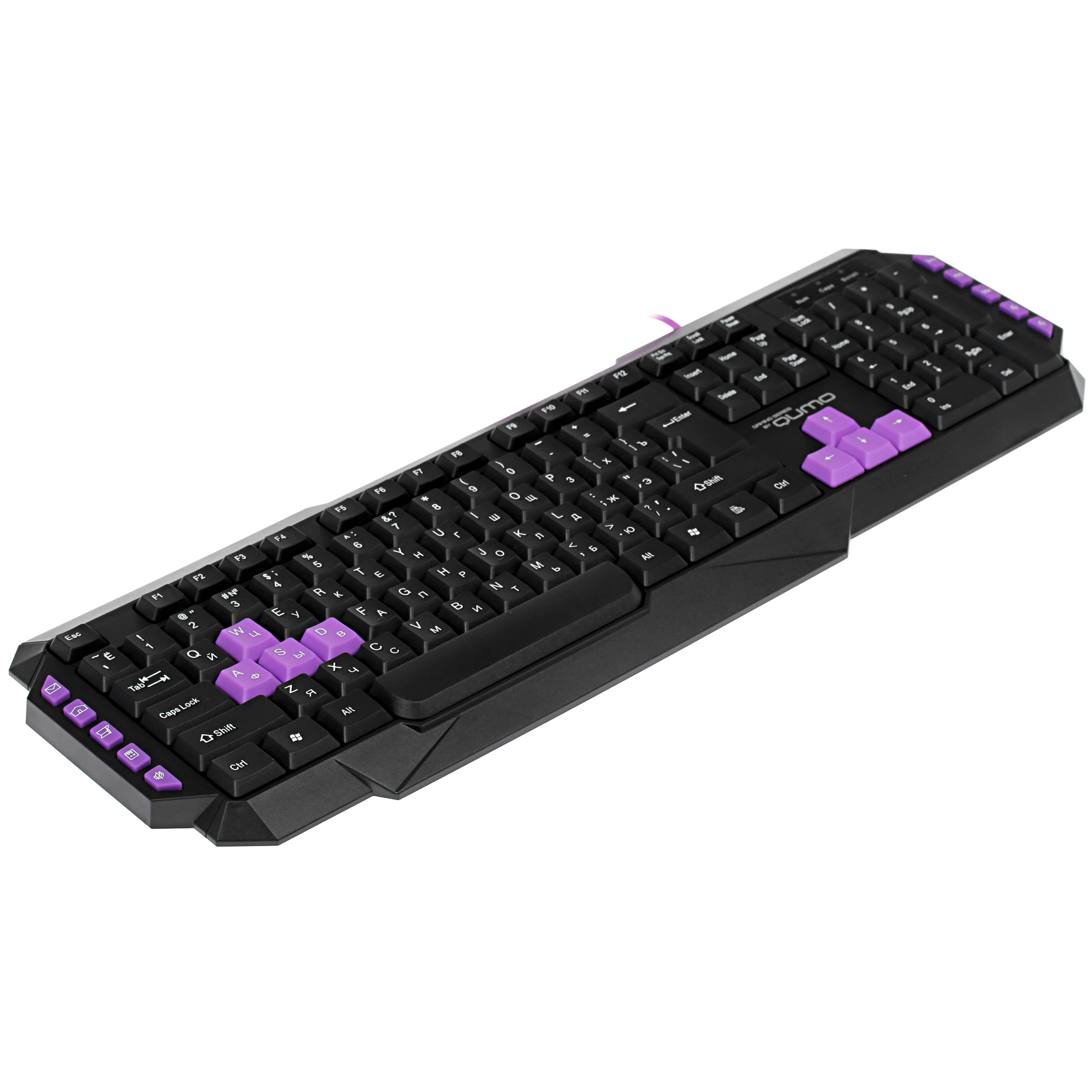 Клавиатура Qumo Desert Eagle версии PRO создана, чтобы занять место одновременно доступной и функциональной игровой клавиатуры QUMO Dragon War Desert Eagle в нашей игровой линейке.Несмотря на свою привлекательную цену имеет влагозащиту, плетеный кабель с магнитным фильтром и фирменным GOLD напылением.Качество заметно даже в мелочах - мультимедийные кнопки изготовлены из приятного на ощупь био-силикона – окрашены в стильный фиолетовый цвет, совпадающий с цветом кабеля, клавиатура отлично вписывается в современный интерьер "рабочего места" геймера.Наряду с полноразмерной раскладкой на ней присутствуют 10 дополнительных кнопок, которые переключают песни, регулируют громкость и запускают приложения. Они выполнены из силикона и приятны на ощупь. Работайте с выделенными клавишами, не отрываясь от игры!Агрессивный дизайн подчёркивает ориентированность на геймеров. Они оценят выделенные стрелки и блок WASD. Цвет этих клавиш такой же, как у провода, который не перетирается и не рвётся благодаря оплётке.Магнитный фильтр подавляет излучение от системного блока и других периферийных устройств, защищая кабель от возникновения помех.На матовой поверхности не остаются отпечатки пальцев.Благодаря утяжелённой конструкции и резиновым вставкам устройство не скользит на столе, а ножки позволяют менять угол наклона.