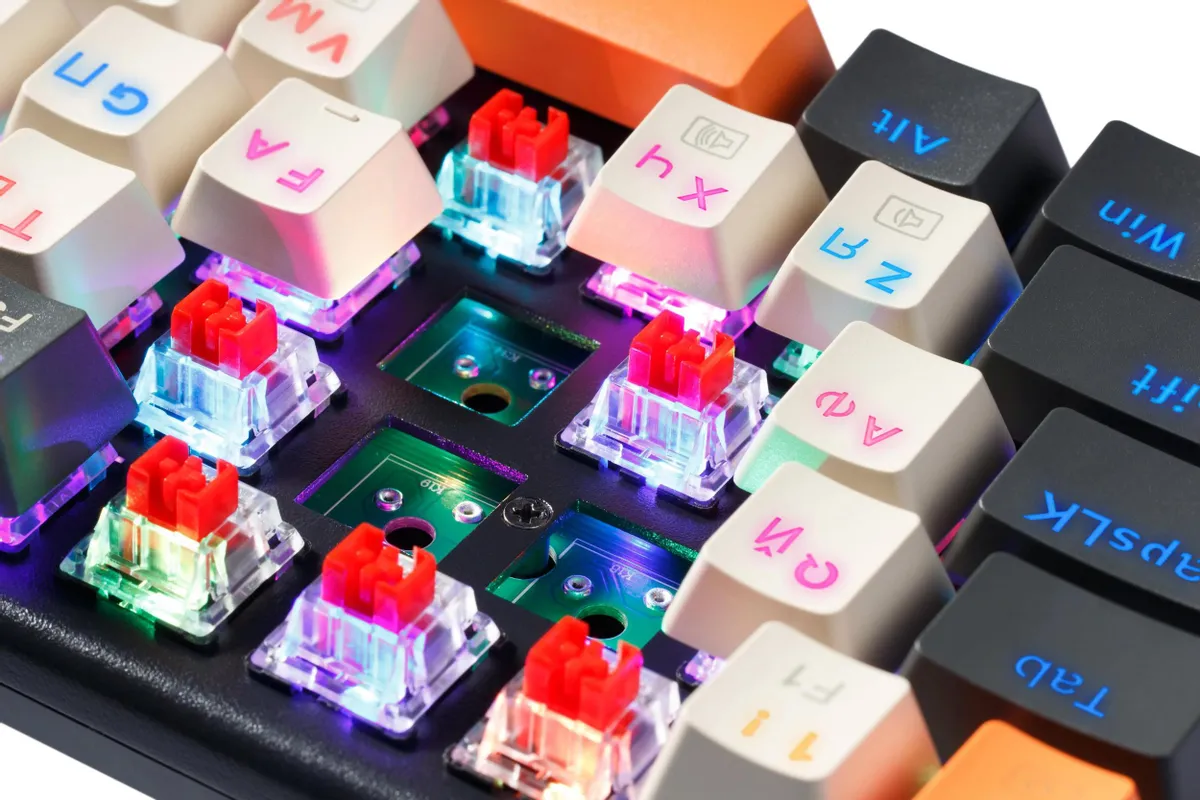 Механическая клавиатура Redragon Ryze - компактное устройство с трехцветной RGB-подсветкой, которое не оставит равнодушными любителей высококачественных устройств. Ее уникальный дизайн и механические переключатели обеспечивают высокую надежность и комфортность при наборе. Погрузитесь в удивительный мир игр и работы с этой клавиатурой.RGB подсветкаВозможность выключения подсветкиВысокопрочный долговечный кабельДышащая подсветкаИгровое программное обеспечениеКомпактный размерМеханические переключатели OUTEMU RedПрограммируемая RGB подсветкаТехнология Double injectionТехнология Hot SwapТихий ход клавиш обеспечивает практически бесшумную работуДополнительный набор кейкапов для кастомизации