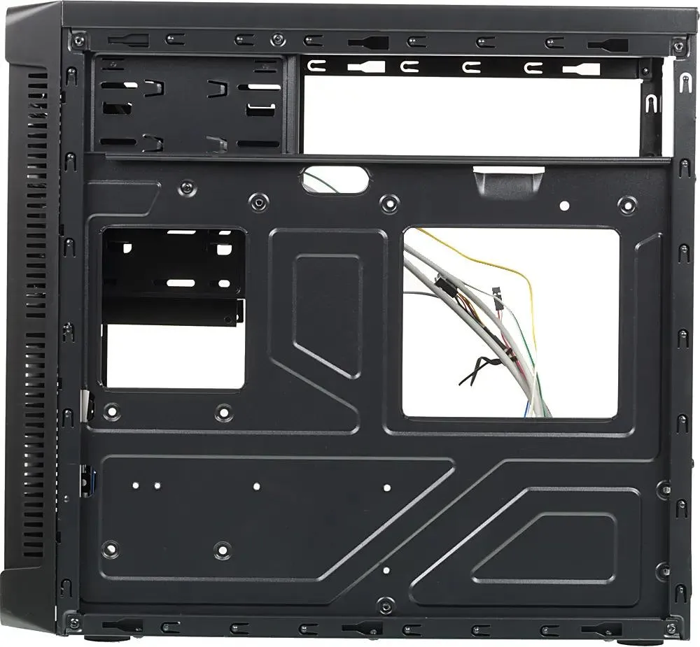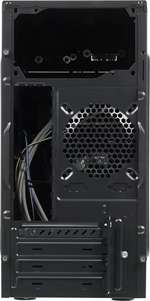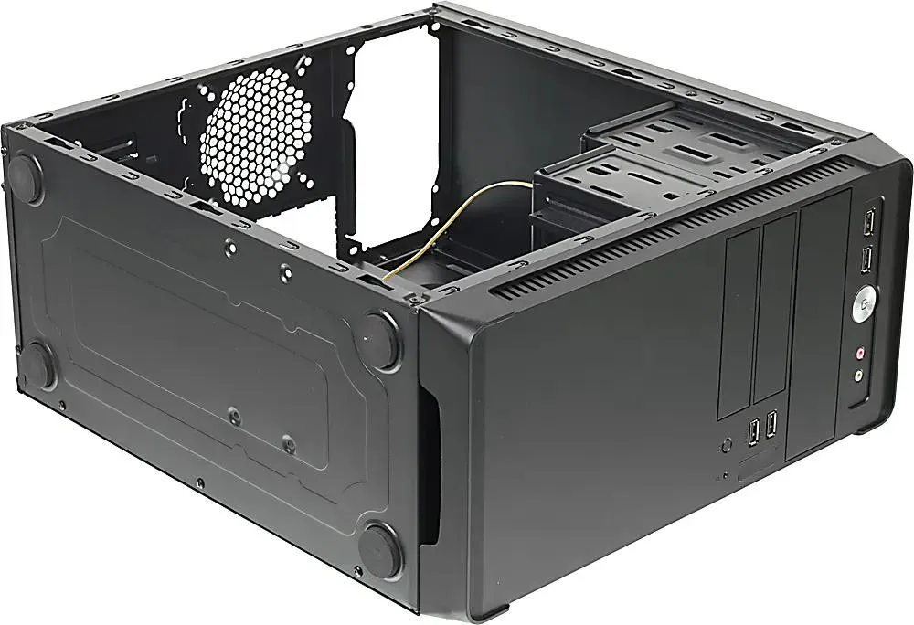 Компактный корпус формата mATX в строгом черном дизайне, подходящий для сборки недорогих офисных и домашних систем. Оснащён местами для установки нескольких накопителей и вентиляторов для базового охлаждения. Поставляется без блока питания, что позволяет выбрать решение под индивидуальные требования.