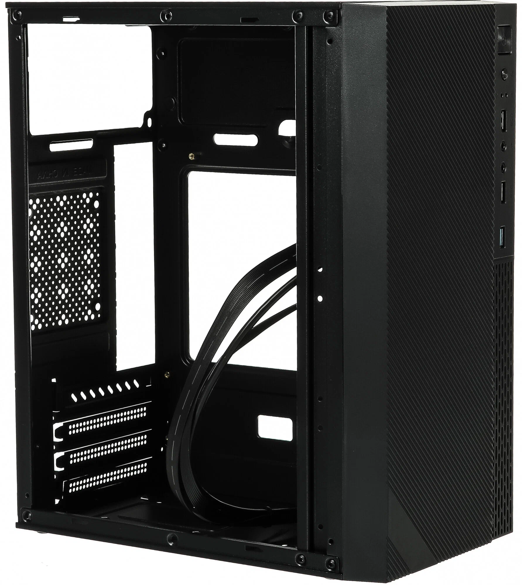 Компактный и практичный корпус формата mATX (Micro ATX), выполненный в строгом чёрном цвете. Поставляется без блока питания, что даёт свободу выбора по мощности и качеству.