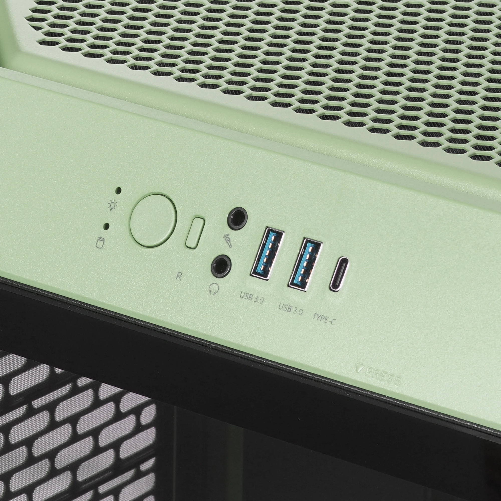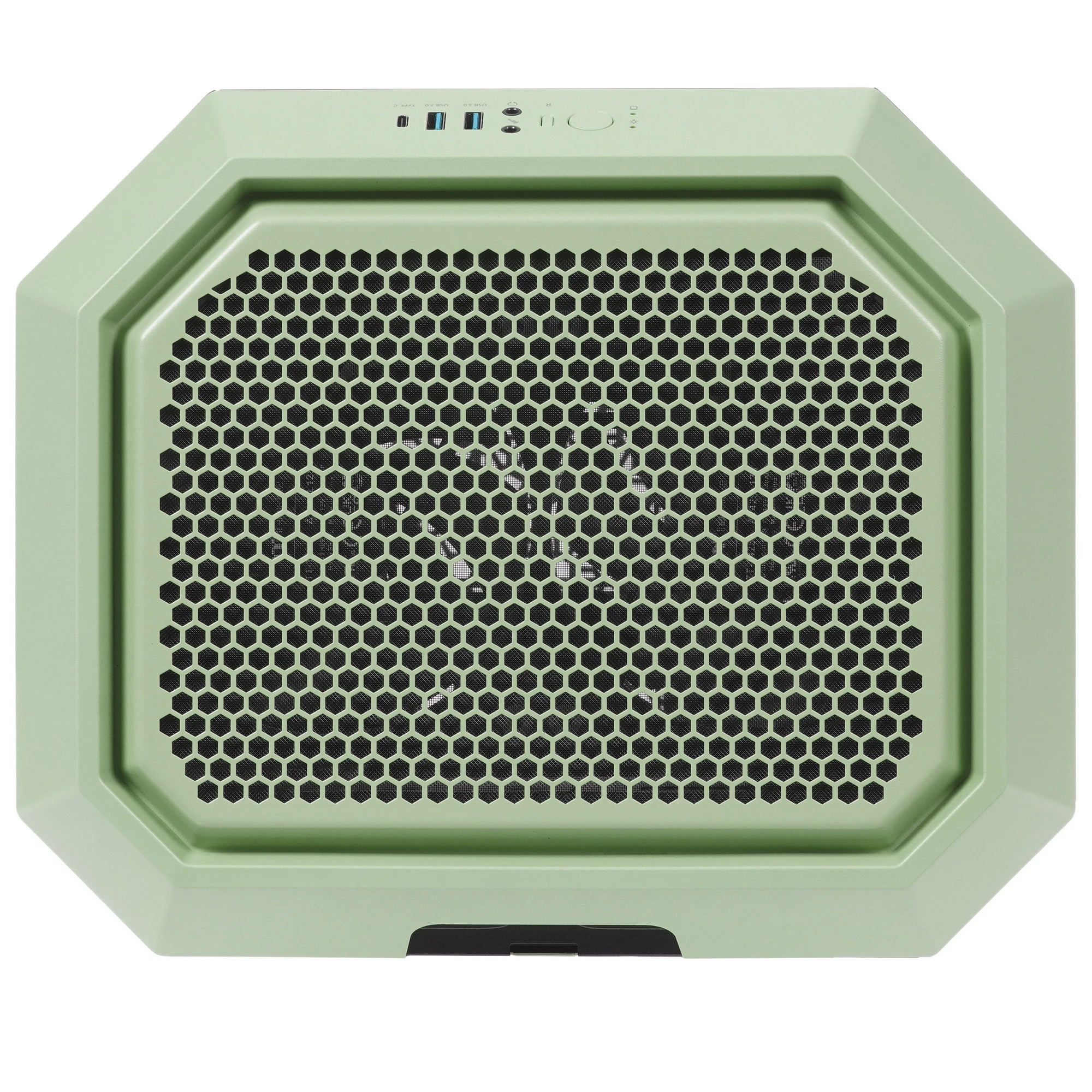 Корпус зеленого цвета имеет вид призмы и установлен вертикально. Для лучшего обзора боковые окна и фронтальная панель выполнены из стекла. Для их фиксации не требуются инструменты, это происходит при помощи защелок. Корпус поставляется с 2 ШИМ-вентиляторами, закрепленными в верхней части. Это улучшает обдув компонентов системы. Есть возможность встроить ЖСО, ведь конструкция подразумевает установку 1 нижнего, 2 тыловых, 2 верхних и 3 боковых вентиляторов диаметром 140 мм и 120 мм. Thermaltake The Tower 300 Matcha Green позволяет закрепить внутри блок питания ATX размером до 220 мм. Высота устанавливаемой видеокарты не должна превышать 400 мм. Фиксация материнской платы Mini-ITX или Micro-ATX происходит разъемами кверху. На передней панели сверху расположены кнопки, индикаторы и разъемы USB 3.2 для подключения мобильных, цифровых устройств, микрофонный и аудиовход.