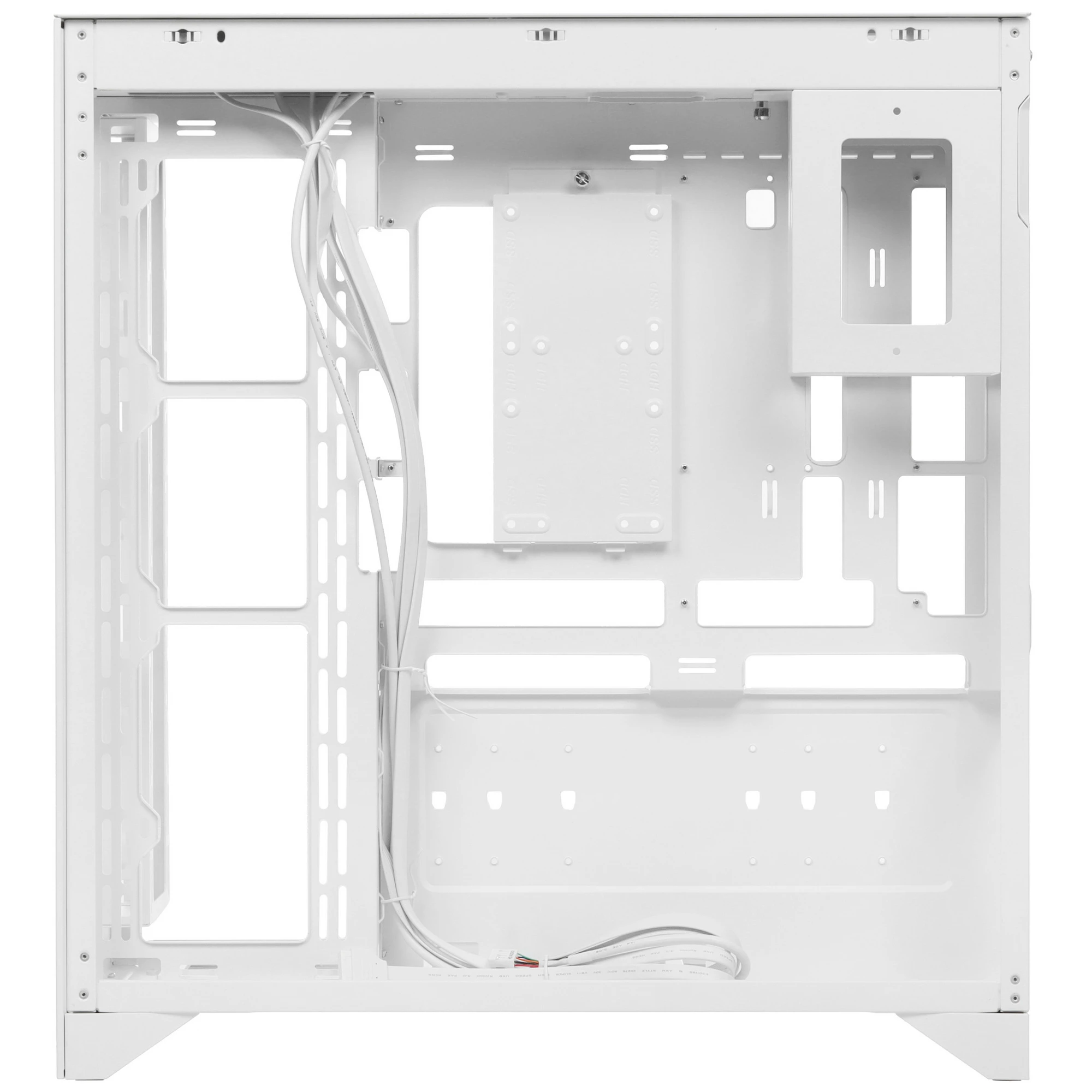 Корпус с белым оформлением получает выполненные из стекла и металлической сетки прозрачные панели. Они обеспечивают оптимальный обзор на размещенные в нем компоненты. Материнская плата в этом корпусе типоразмера Midtower устанавливается в трех положениях, в том числе вертикально. Модель поддерживает установку дискретной видеокарты или другой платы расширения до 443.8 мм длиной. Процессорный кулер может быть высотой до 166 мм. Корпус для геймерского системного блока поставляется без установленного блока питания. Для монтажа кулеров системы воздушного охлаждения модель предлагает окна в верхней, задней, фронтальной панелях. Для улавливания пыли, затягиваемой вентиляторами, корпус получает пылевой фильтр.
