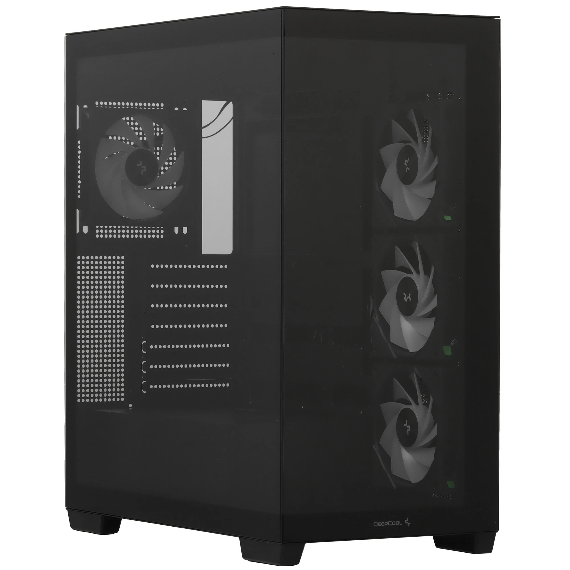 Корпус Deepcool CG580 4F — это стильный и функциональный Mid-Tower без блока питания, предназначенный для сборки мощных ПК. Он сочетает в себе современный дизайн с панорамными стеклянными панелями и эффективную систему охлаждения.