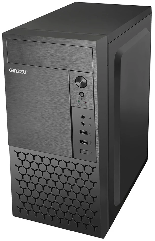 Корпус GiNZZU B410 классического черного цвета создан для того, чтобы объединить стандартную для офиса аппаратную конфигурацию. Он собран из пластика и стали толщиной 0.5 мм. Для накопителей HDD и SSD предусмотрено по 2 посадочных места. Панель включения и выключения у корпуса GiNZZU B410 располагается спереди. За счет стандартных интерфейсов USB к нему можно присоединить всю необходимую периферию. Лаконичный дизайн и простота использования – главные плюсы представленного устройства.