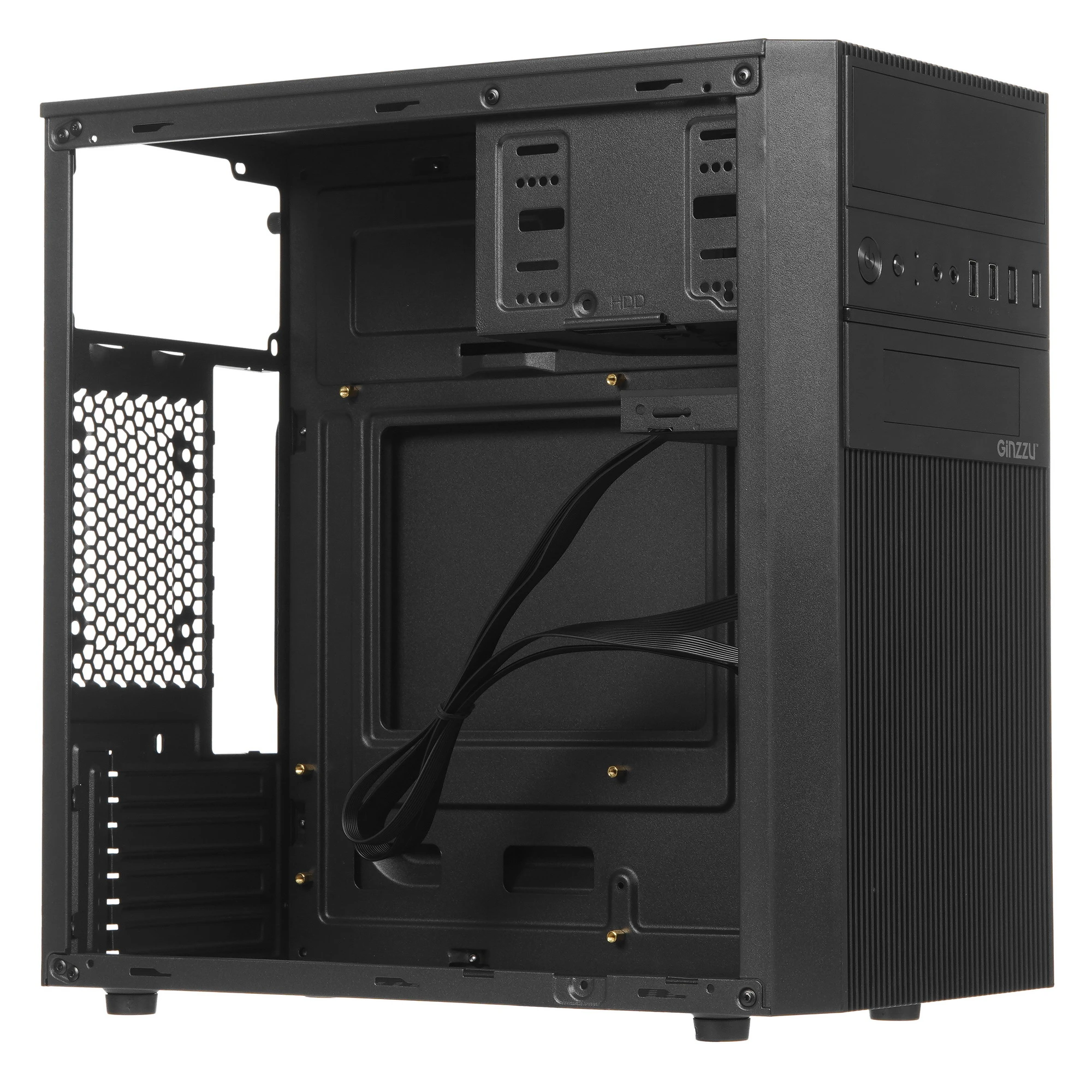 Корпус GiNZZU D190 классического черного цвета создан для того, чтобы объединить стандартную для офиса аппаратную конфигурацию. Он собран из пластика и стали толщиной 0.6 мм. Для накопителей HDD и SSD предусмотрено по 2 посадочных места. Панель включения и выключения у корпуса GiNZZU D190 располагается спереди. За счет стандартных интерфейсов USB к нему можно присоединить всю необходимую периферию. Лаконичный дизайн и простота использования – главные плюсы представленного устройства.