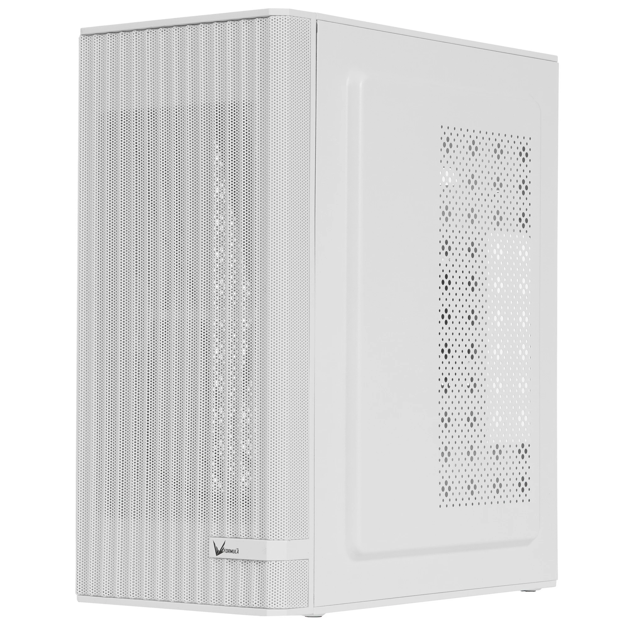 Корпус Formula V Line AIR MESH G1 представляет собой компактный Mini-tower белого цвета, предназначенный для материнских плат форм-факторов m-ATX и m-ITX. Корпус поставляется без блока питания и оснащен одним предустановленным 80-миллиметровым вентилятором для охлаждения. На передней панели расположены два порта USB 1.0 и один порт Type-C, обеспечивая удобное подключение периферийных устройств. Данная модель сочетает в себе компактные размеры и функциональность, что делает ее подходящей для сборки небольших и средних систем.
