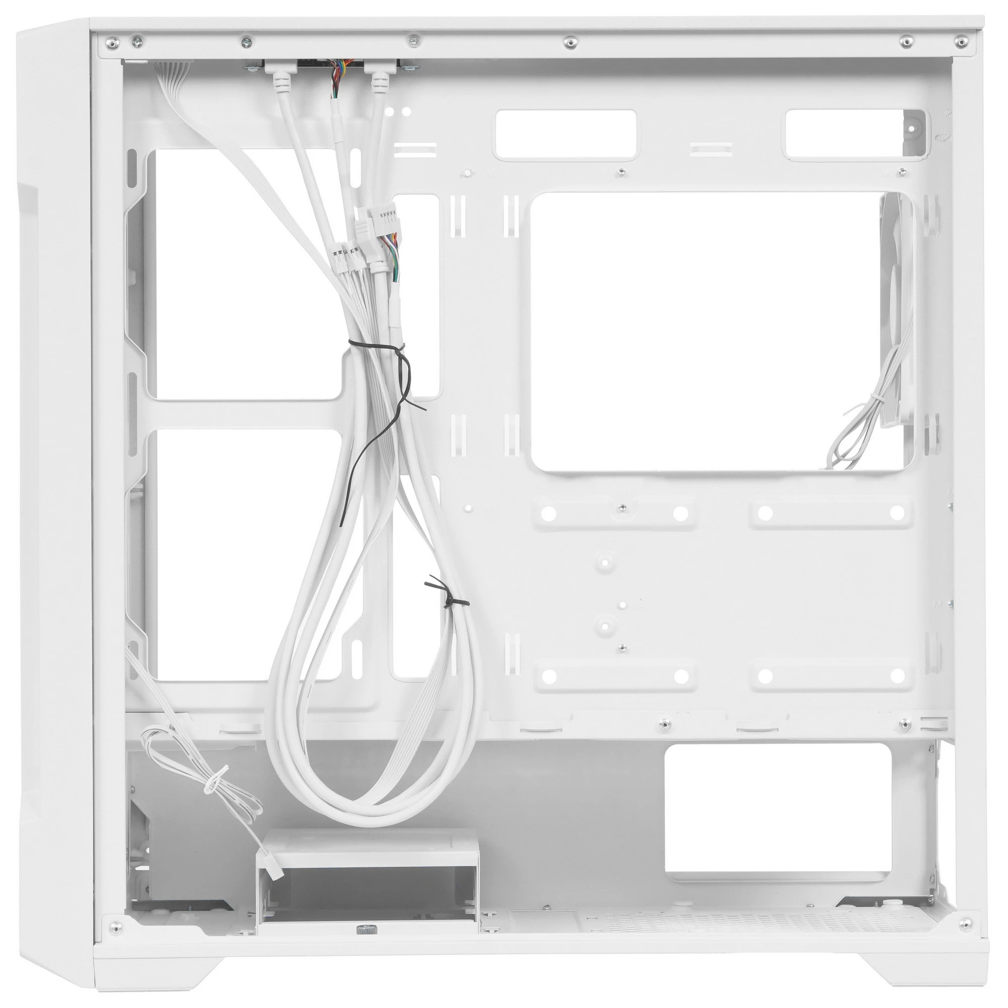 Корпус представляет собой стильное и функциональное решение для сборки компактного компьютера. Этот корпус формата Mid-Tower поддерживает установку материнских плат форм-факторов Micro ATX и Mini ITX, что делает его универсальным выбором для различных конфигураций. Одной из главных особенностей корпуса является полноразмерная боковая панель из закаленного стекла, которая позволяет продемонстрировать внутренние компоненты системы. На передней панели расположены два порта USB 3.0 и комбинированный аудиоразъем для наушников и микрофона, обеспечивая удобный доступ к часто используемым интерфейсам.