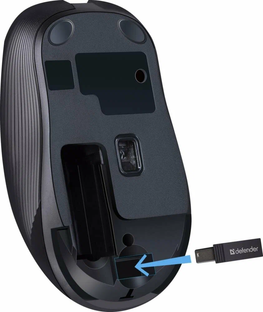 Беспроводная компьютерная мышь передаёт сигнал с использованием радиоканала. Для этого в комплекте идёт USB-модуль, который необходимо подключить в разъём компьютера. Манипулятор может работать на расстоянии до 10 метров от устройства. Питание производится при помощи батарейки типа AA.