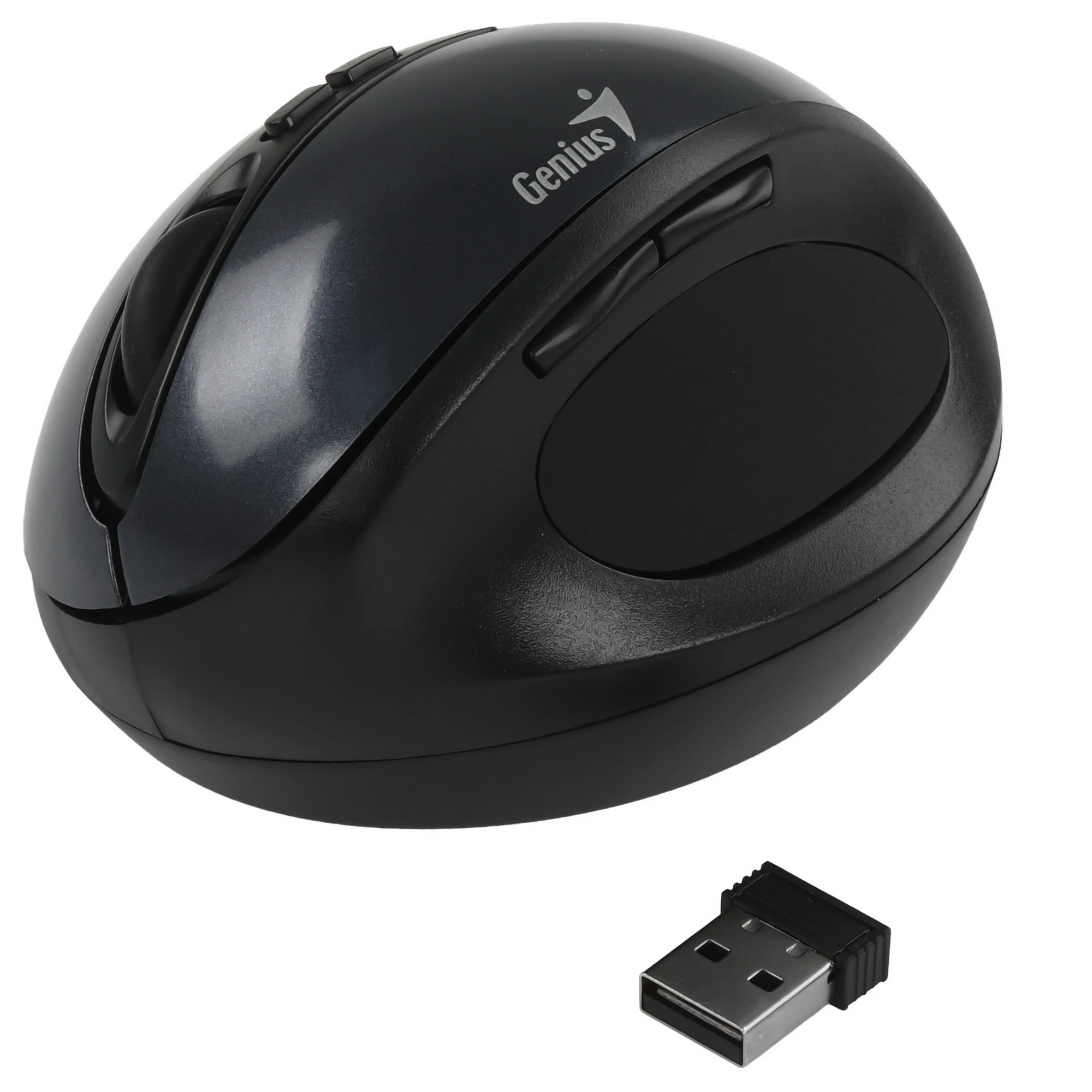 Беспроводная вертикальная мышь Genius Ergo 8300S разработана с акцентом на комфорт пользователей, которые проводят длительное время за компьютером. Ее эргономичная форма снижает нагрузку на руку, помогая избежать усталости при продолжительном использовании. Мышь выполнена в цвете серый металлик с черными акцентами и имеет асимметричную конструкцию, что делает ее удобной для правой руки.Мышь оснащена 7 кнопками, включая боковые для навигации вперед и назад, а также для регулировки разрешения DPI/CPI. Пользователи могут выбрать одну из трех настроек чувствительности: 1000 dpi, 1200 dpi и 1600 dpi. Оптический сенсор с высоким разрешением обеспечивает точное и плавное движение курсора на экране.