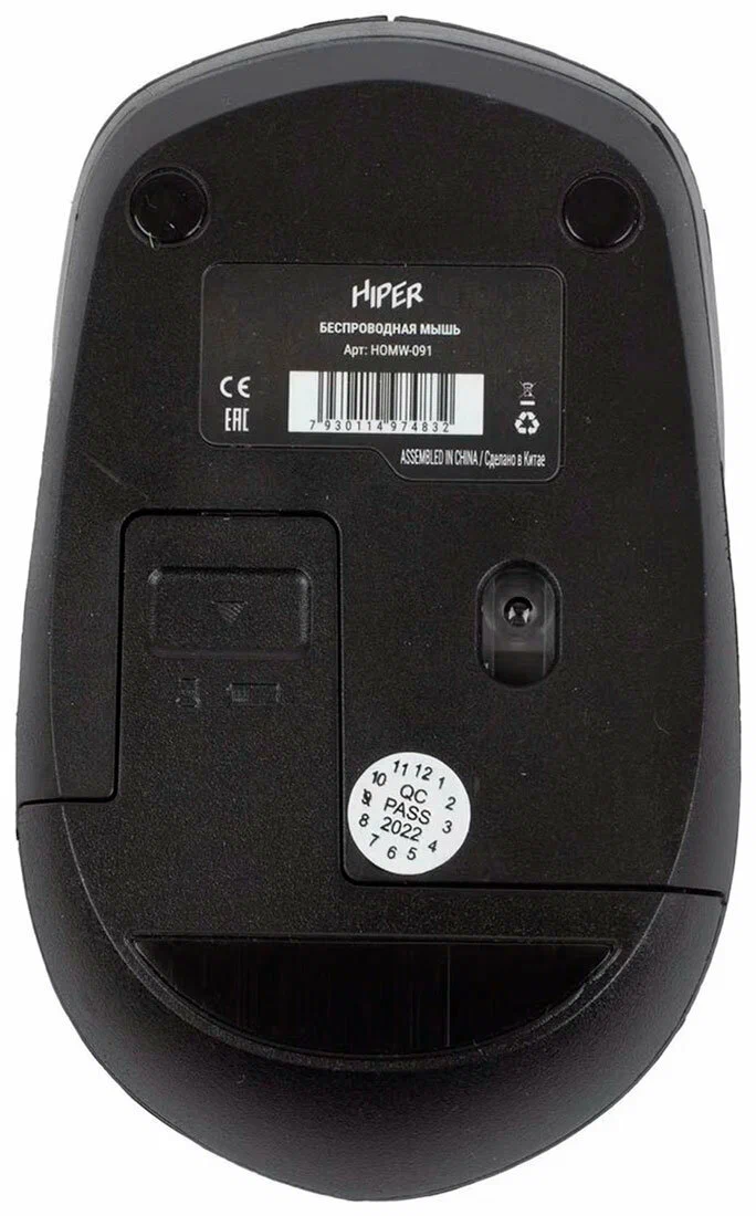 Мышь беспроводная HIPER HOMW-091 черный, 1600 dpi, радиоканал, USB, кнопки - 4 [HOMW-091]