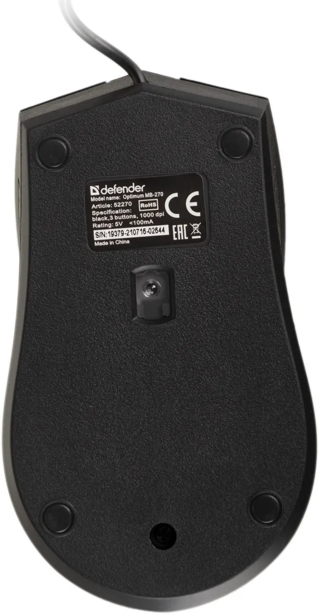 Мышь проводная Defender Optimum MB-270 черный, 1000 dpi, USB, кнопки - 3 [52270]