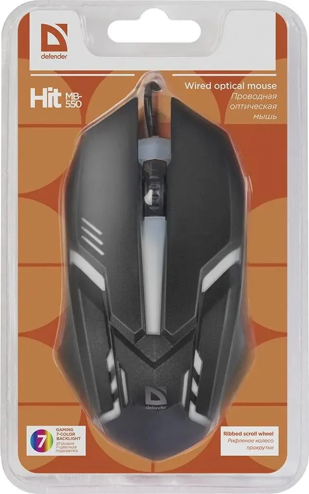 Мышь проводная Defender Hit MB-550 черный, 1600 dpi, USB, кнопки - 4 [52550]