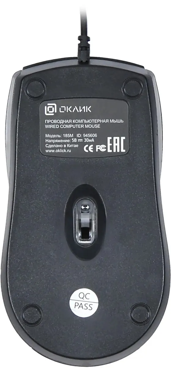 Мышь проводная Oklick 185M черный, 1200 dpi, USB, кнопки - 3 [185M черный]