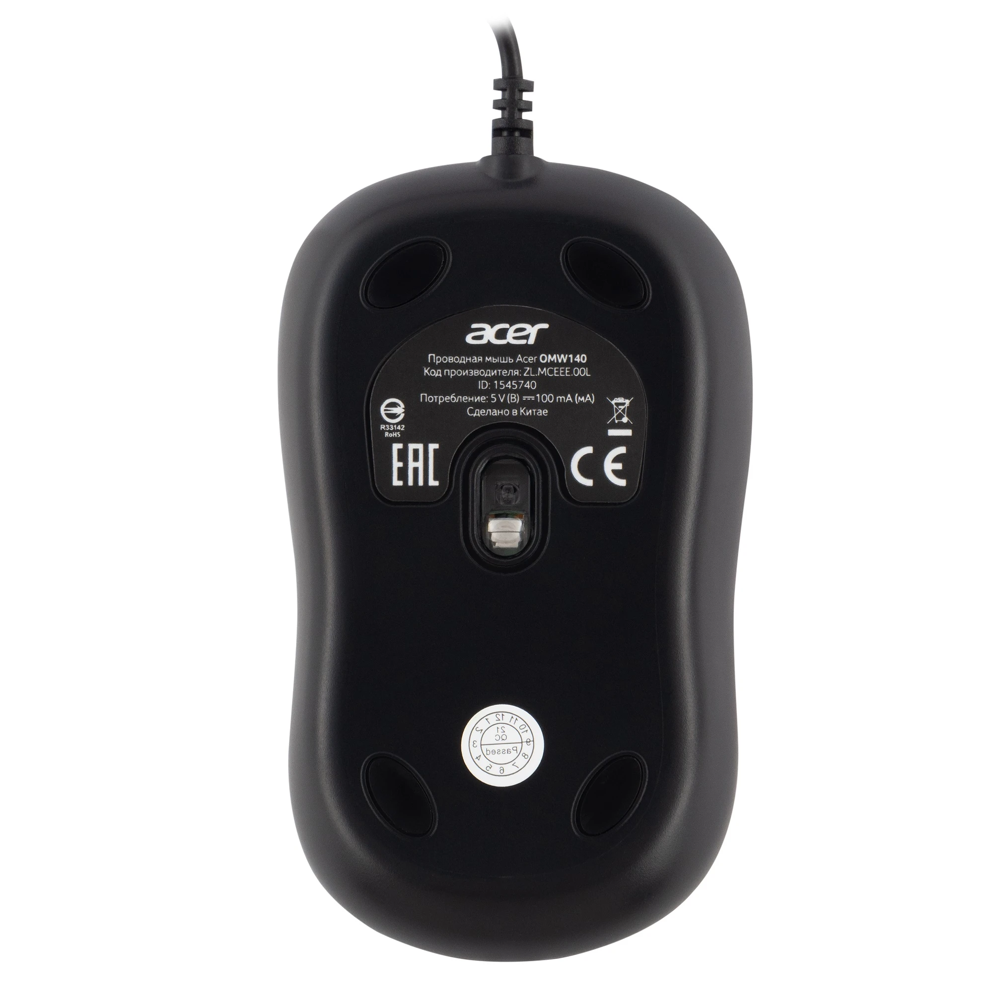 Мышь проводная Acer OMW140 черный, 1200 dpi, USB, кнопки - 3 [ZL.MCEEE.00L]