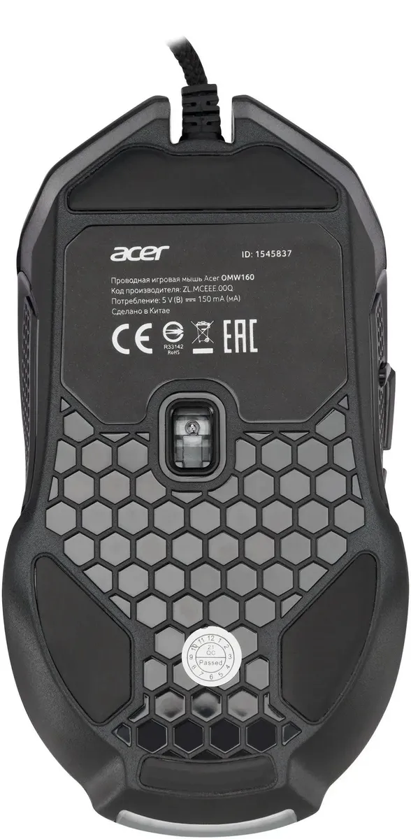 Мышь проводная Acer OMW160 черный, 6400 dpi, USB, кнопки - 8 [ZL.MCEEE.00Q]