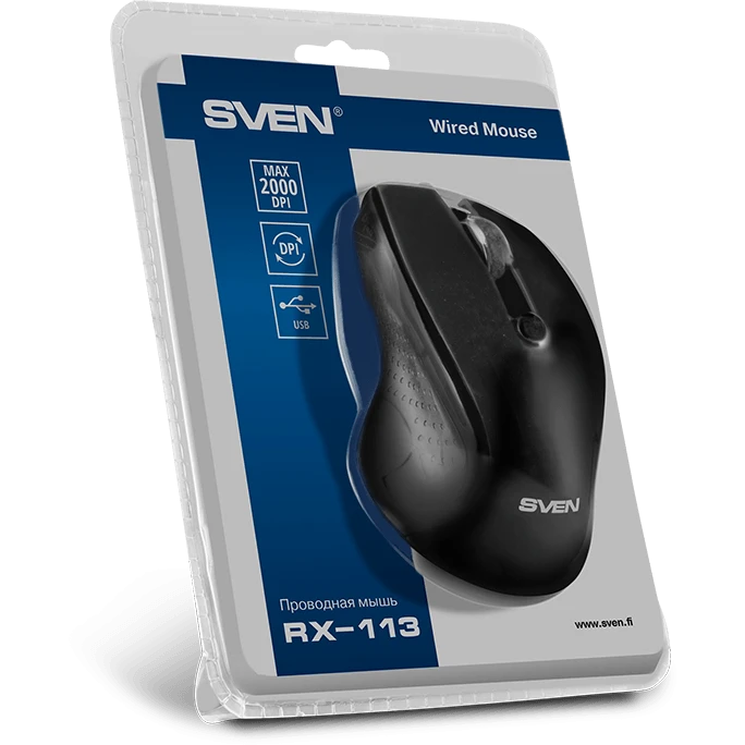 Мышь проводная SVEN RX-113 черный, 2000 dpi, USB, кнопки - 6 [SV-018733]