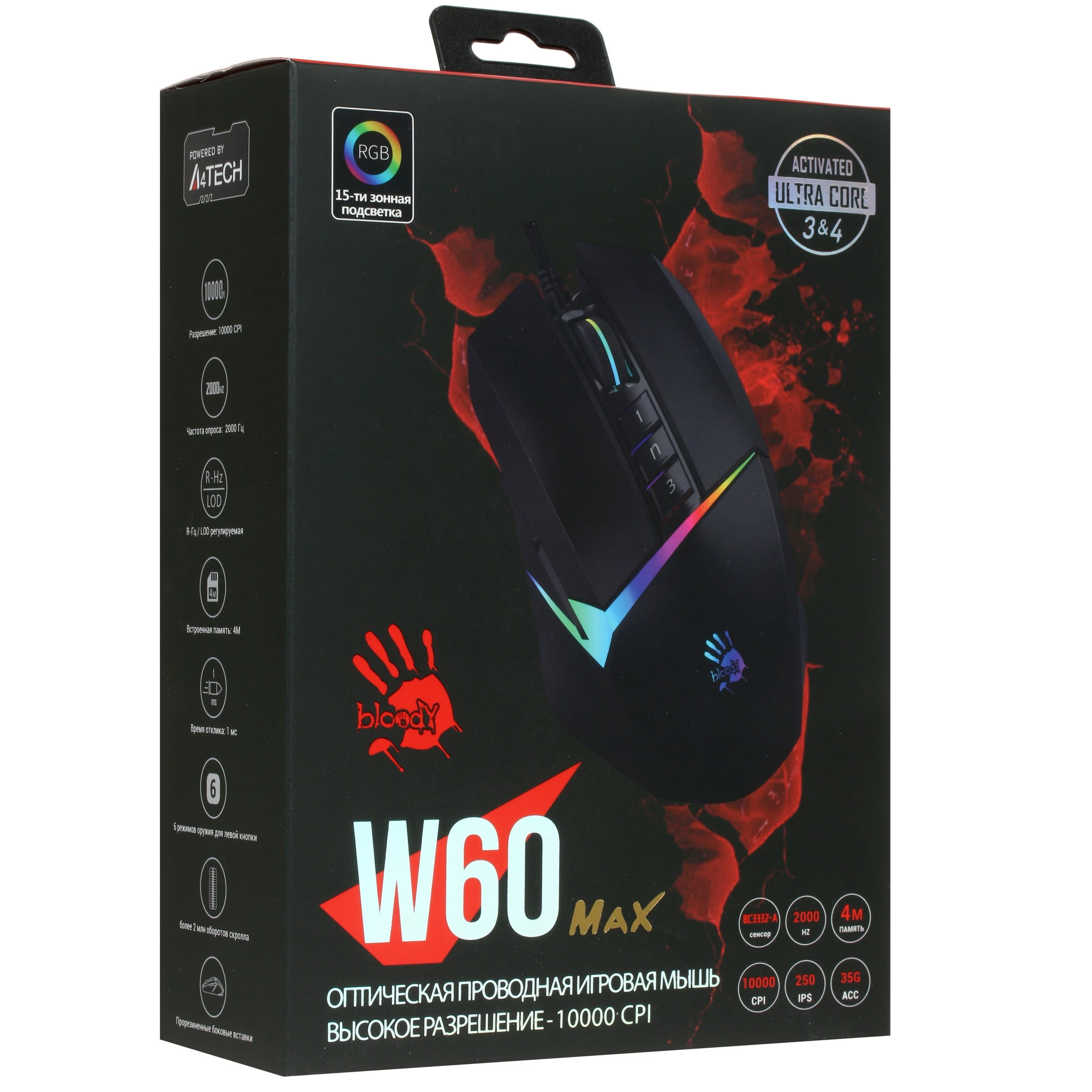 Мышь проводная A4Tech Bloody W60 Max черный, 10000 dpi, USB, кнопки - 10 [W60 MAX]