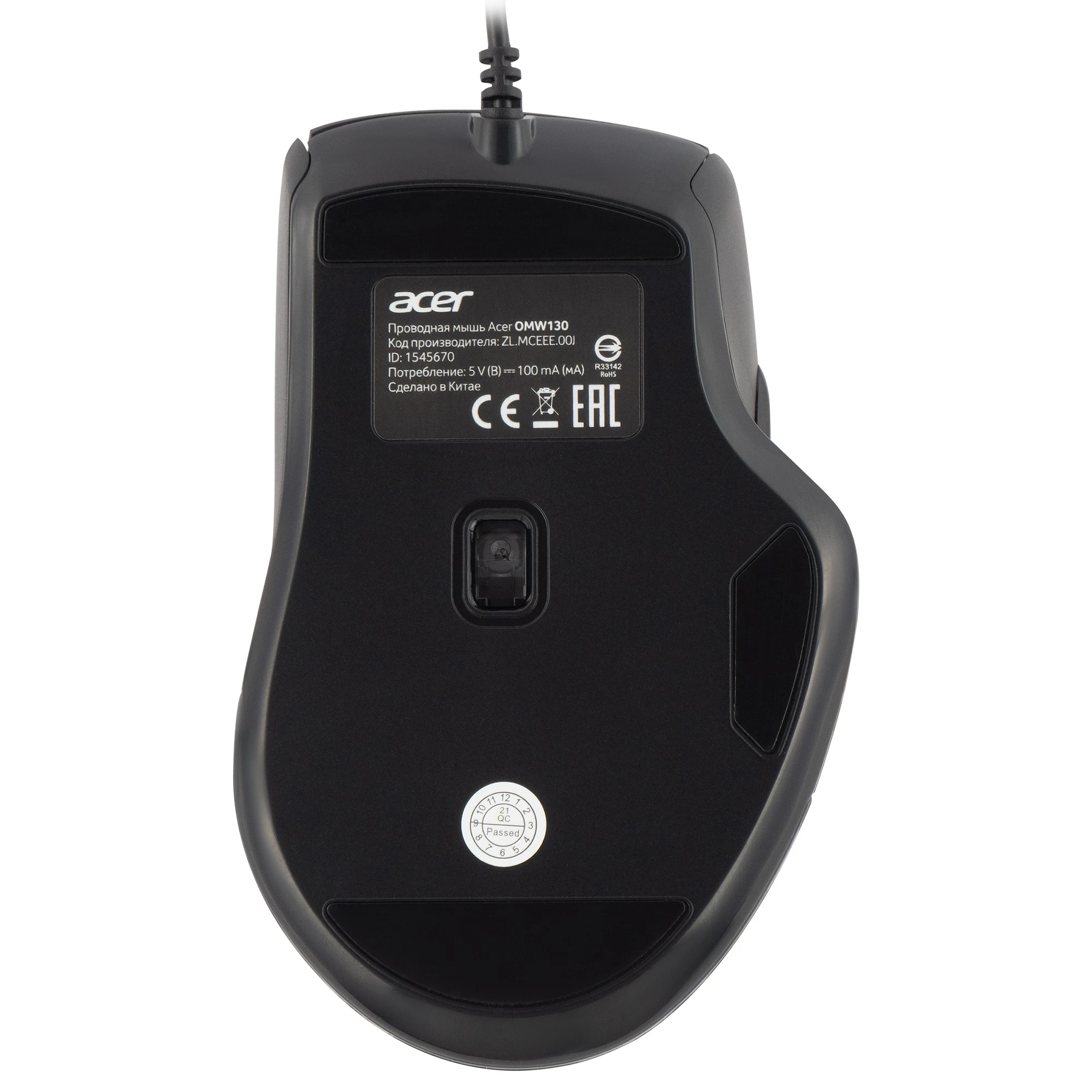 Мышь проводная Acer OMW130 черный, 3600 dpi, USB, кнопки - 6 [ZL.MCEEE.00J]