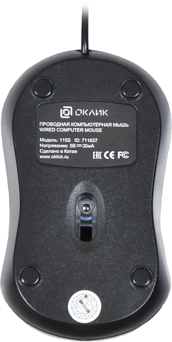 Мышь проводная Oklick 115S черный/красный, 1200 dpi, USB, кнопки - 3 [115S черный/красный]
