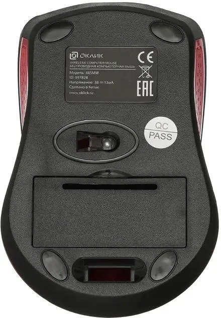 Мышь беспроводная Oklick 485MW черный/красный, 1200 dpi, радиоканал, USB, кнопки - 3 [MO-353]
