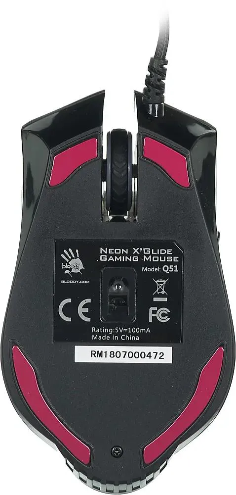 Мышь проводная A4Tech Bloody Q51 черный, 3200 dpi, USB, кнопки - 8 [Q51 черный/рисунок]