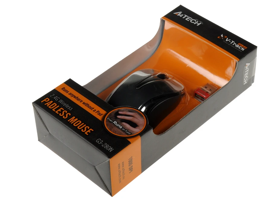 A4Tech G3-280N-1 - это беспроводная оптическая мышь, которая может работать на неровных и рельефных поверхностях. Усиленный оптический луч G3-280N-1, глубоко проникает в структуру поверхности, благодаря чему мышь быстро и четко работает на любых покрытиях. Если Вы хотите сделать свою работу за компьютером более легкой и быстрой, обратите внимание на правую кнопку мыши, в зависимости от направления движения руки она может выполнять до 16-ти различных функций, например, «Увеличить/Уменьшить», «Прокрутка влево/Прокрутка вправо», «Копировать/Вставить»