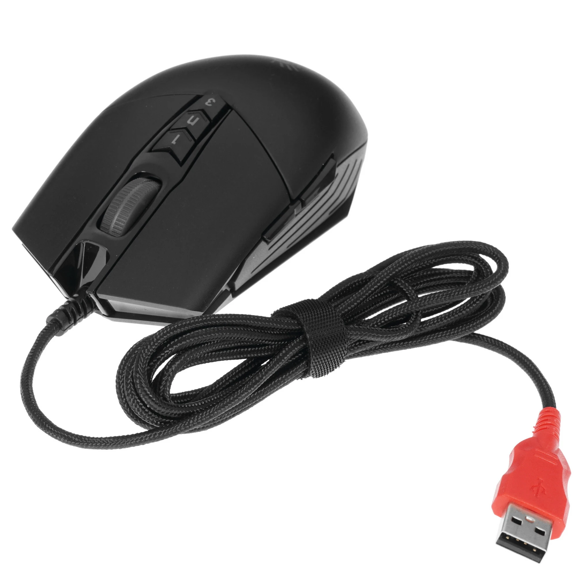 Мышь проводная A4Tech Bloody P91 Pro – игровой манипулятор высокого класса, отличающийся высоким (16000 dpi) максимальным разрешением оптического датчика. Используемая модель сенсора – PixArt PMW3389. Разрешение сенсора можно изменять. Частота опроса стандартна – 2000 Гц. Мышь проводная A4Tech Bloody P91 Pro оборудована 8 кнопками. Симметричность корпуса устройства дает возможность управления правой или левой рукой. Материал корпуса – матовый пластик. Мышь исключительно надежна: ресурс ее кнопок оценивается производителем в 20 миллионов нажатий. Особенностью конструкции манипулятора являются металлические ножки. Имеется многоцветная подсветка. Мышь подключается с помощью 1.8-метрового кабеля, имеющего прочную, износостойкую оплетку.
