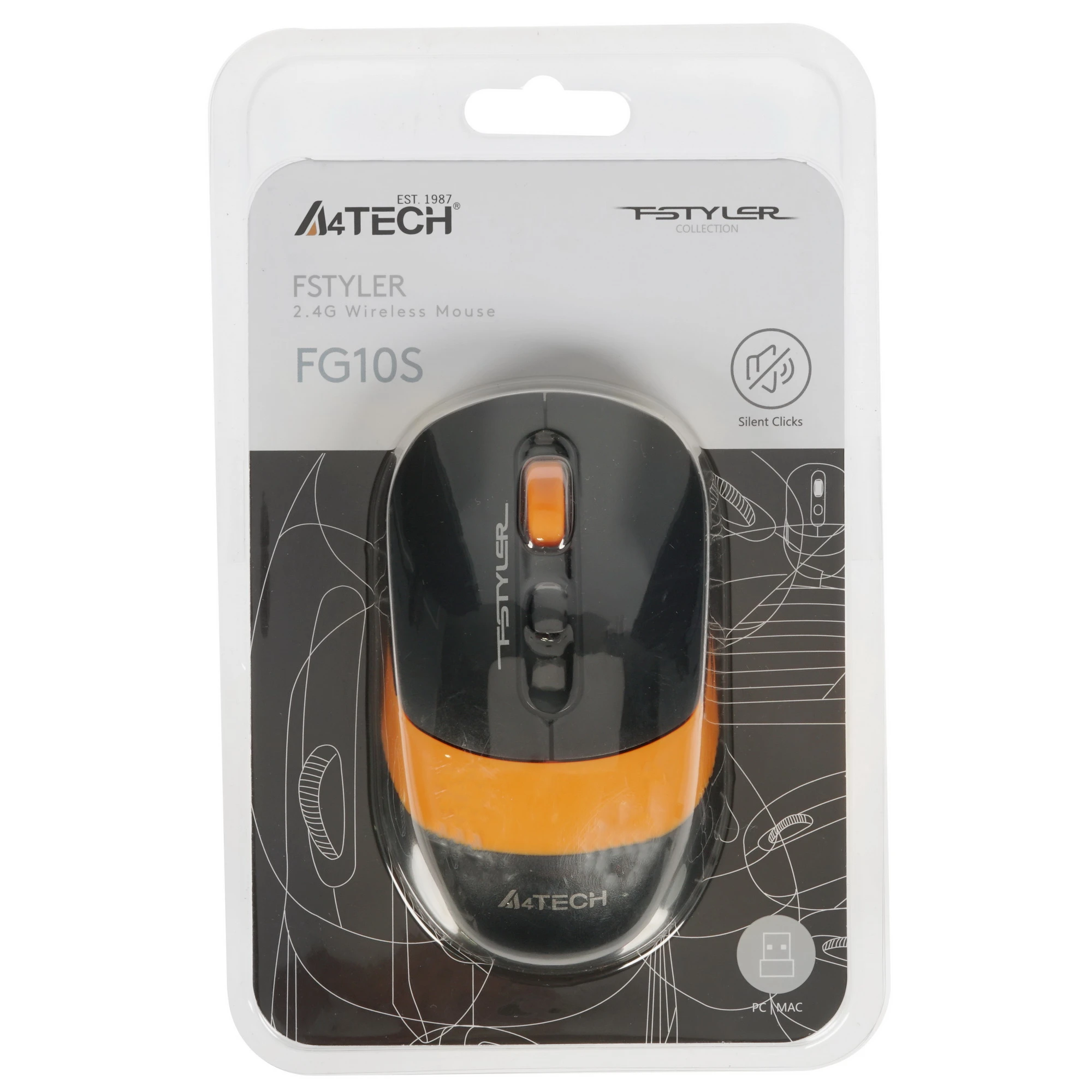 Мышь беспроводная A4Tech Fstyler 2000 dpi [FG10S черный/оранжевый]