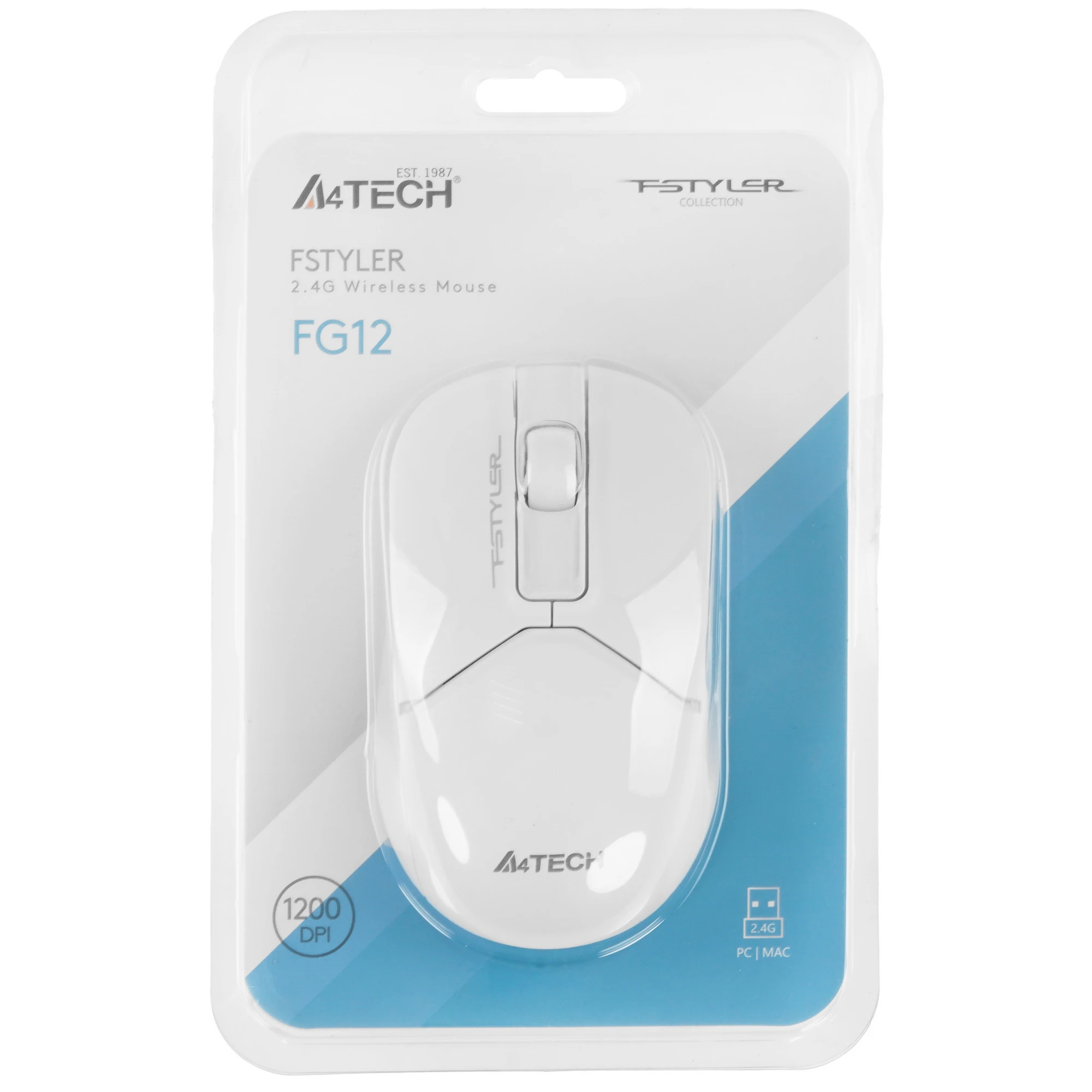 Мышь беспроводная A4Tech Fstyler 1200 dpi, радиоканал, USB, кнопки - 3 [FG12 белый]