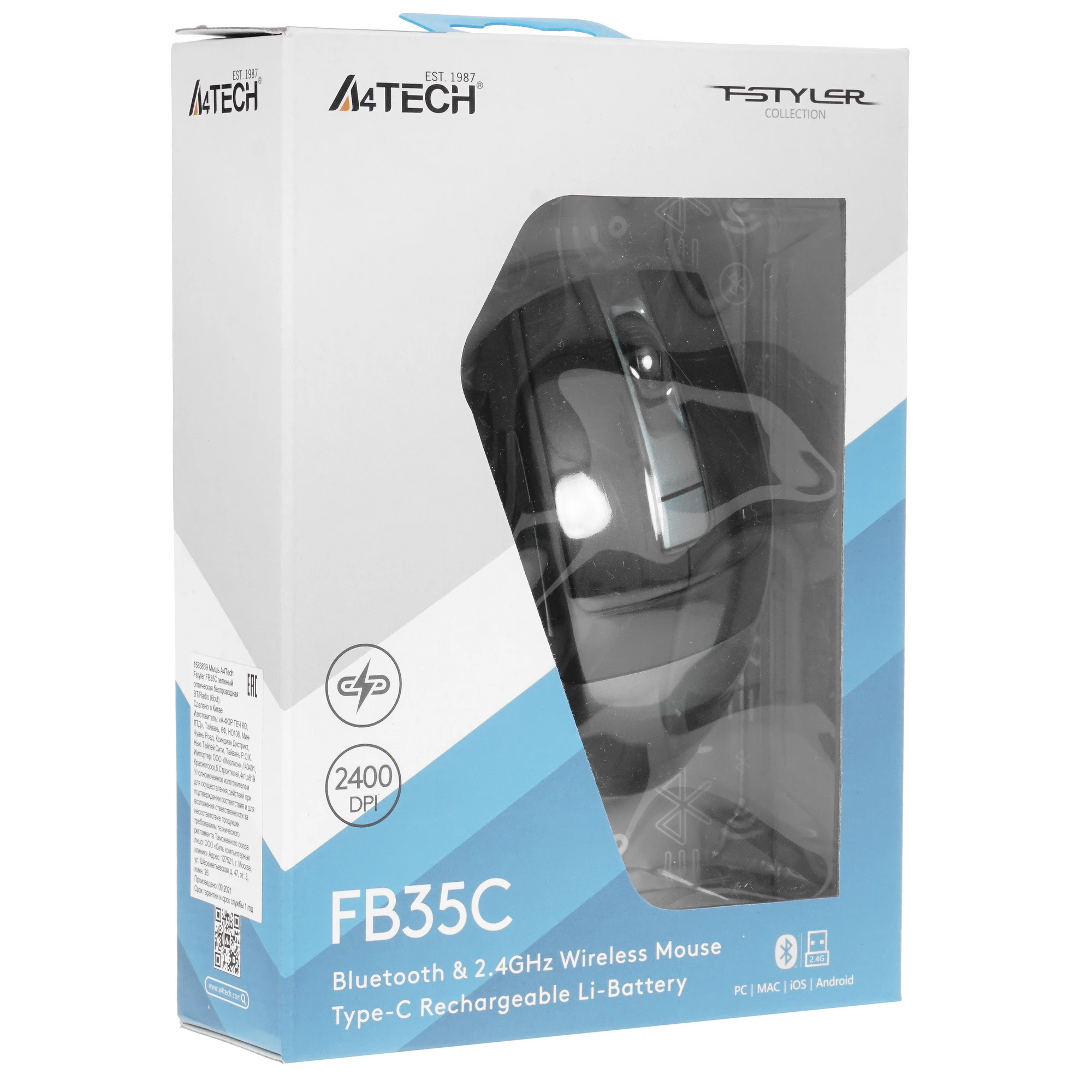 Мышь беспроводная A4Tech Fstyler FB35C поддерживает беспроводной режим Bluetooth и 2.4 Ггц через приемник USB. В комплект входит миниатюрный ресивер, который устанавливается в порт USB-A, а при ненадобности прячется в специальный отсек корпуса мыши. У модели реализована возможность одновременного соединения с 3 устройствами и быстрого переключения между ними, что позволяет использовать единственную мышь для управления ПК, планшетом и TV-приставкой. Установка программного обеспечения открывает возможности использования функций распознавания движений. Пользователь может связать до 16 жестов с определенными действиями, для их активации предусмотрены дополнительные кнопки. Источником питания является встроенный аккумулятор. Он заряжается при помощи кабеля USB-C, который входит в комплект, поэтому вам не придется запасаться батарейками. Мышь беспроводная A4Tech Fstyler FB35C может работать в 4 режимах чувствительности датчика в зависимости от ваших предпочтений.