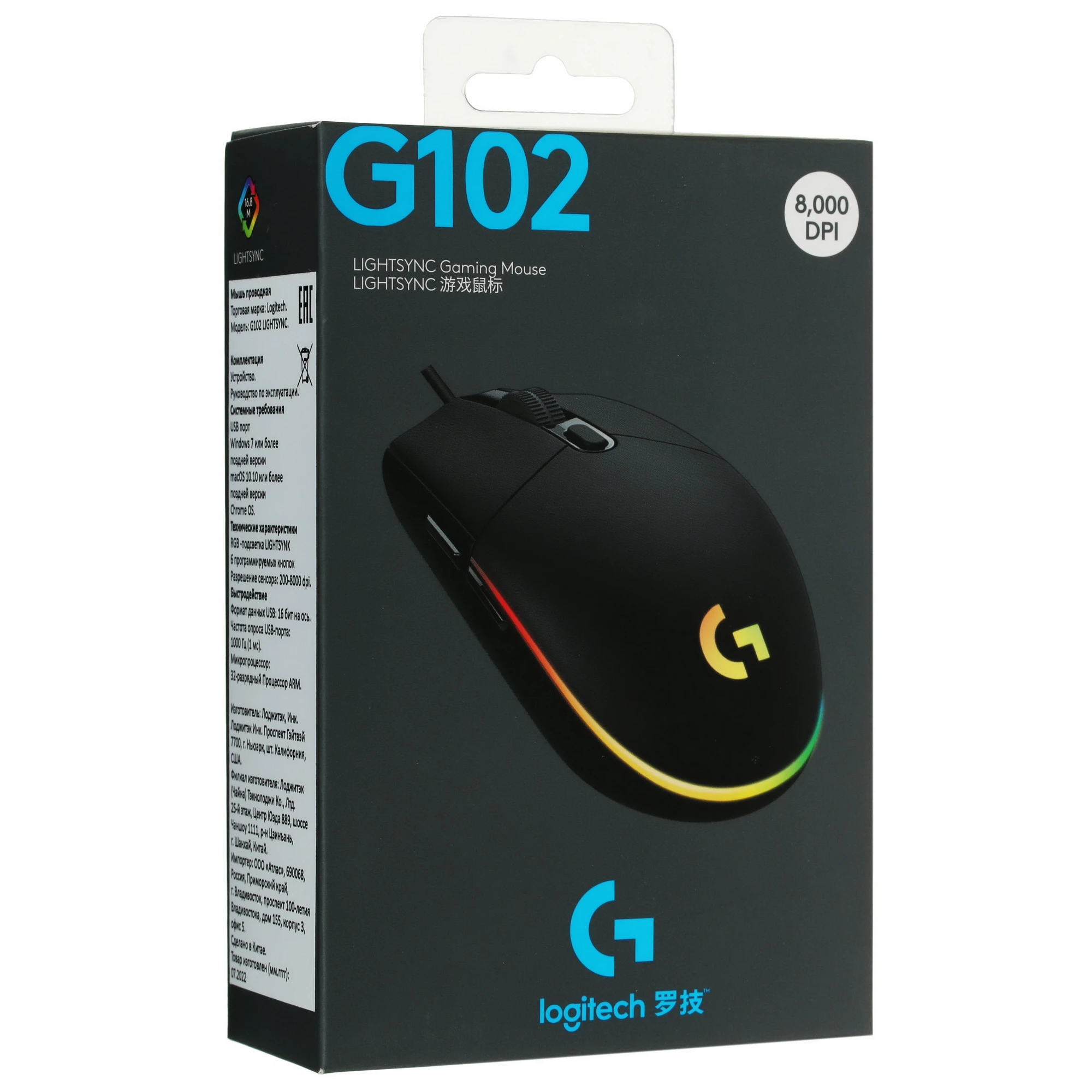 Мышь проводная Logitech G102 LIGHTSYNC черный, 8000 dpi, USB [910-005823/910-005808]