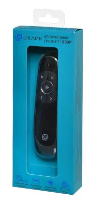 Беспроводной презентер Оклик 699P поможет успешно провести важное выступление – презентацию в офисе, доклад на масштабной деловой конференции или лекцию в вузе. Модель выполнена в виде удобного пульта с 7 кнопками. Спереди на корпусе расположены кнопки для запуска полноэкранного режима, перелистывания слайдов вверх и вниз, активации лазерной указки и возвращения в режим черного экрана. Сбоку размещены клавиша переключения между Windows (PowerPoint) и Mac (KeyNote), а также кнопка включения и выключения устройства. Кликер Оклик 699P подключается к компьютеру или ноутбуку через USB-ресивер. Можно не опасаться потерять ресивер, так как он хранится в специальном отсеке внутри презентера. Радиус действия у модели внушительный – 30 м. Этого с запасом хватит для демонстрации презентаций в просторных помещениях – актовых залах и аудиториях. Аксессуар обладает компактными размерами и легким весом. При длине 13,5 см он весит 36 г без учета батареек. Презентер удобно носить с собой в кармане брюк или пиджака, а также держать в руке на протяжение всего выступления. Кликер работает от двух мизинчиковых батареек формата AAA, которые идут в комплекте.