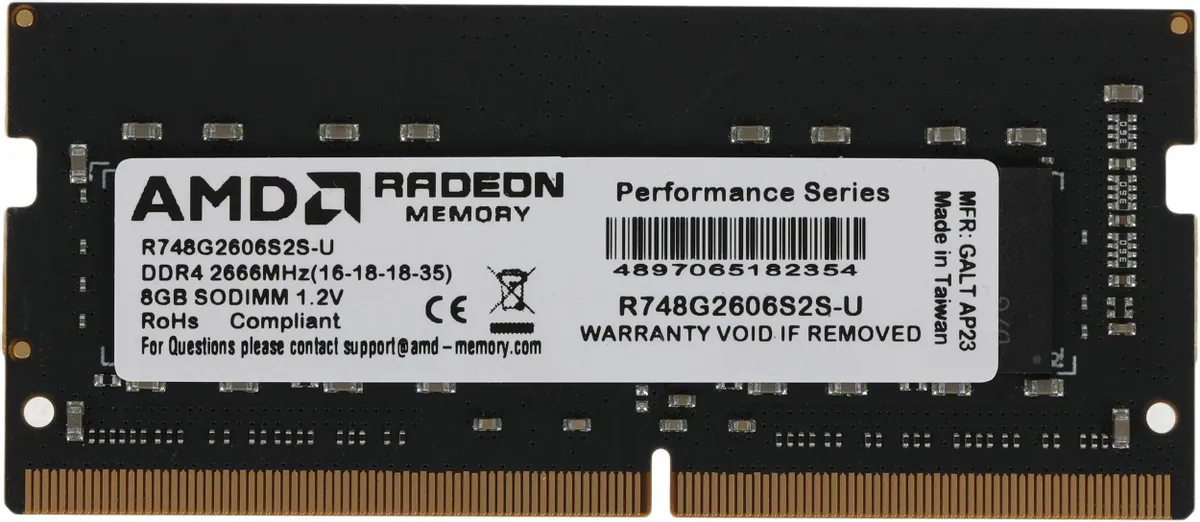 Оперативная память 8GB AMD Radeon™ DDR4 2666 SO DIMM R7 Performance Series Black R748G2606S2S-U Non-ECC, CL16, 1.2V, RTL [R748G2606S2S-U]