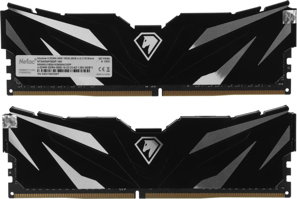 Оперативная память Netac 16GB DDR4 3600MHz Shadow II (2x8GB) CL18 1.35V / NTSWD4P36DP-16K / Black / with radiator [NTSWD4P36DP-16K]