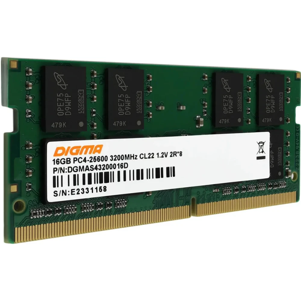 Оперативная память Digma DGMAS43200016D DDR4 16Gb 3200MHz RTL PC4-25600 CL22 SO-DIMM 260-pin 1.2В dual rank Ret предназначена для ноутбуков.