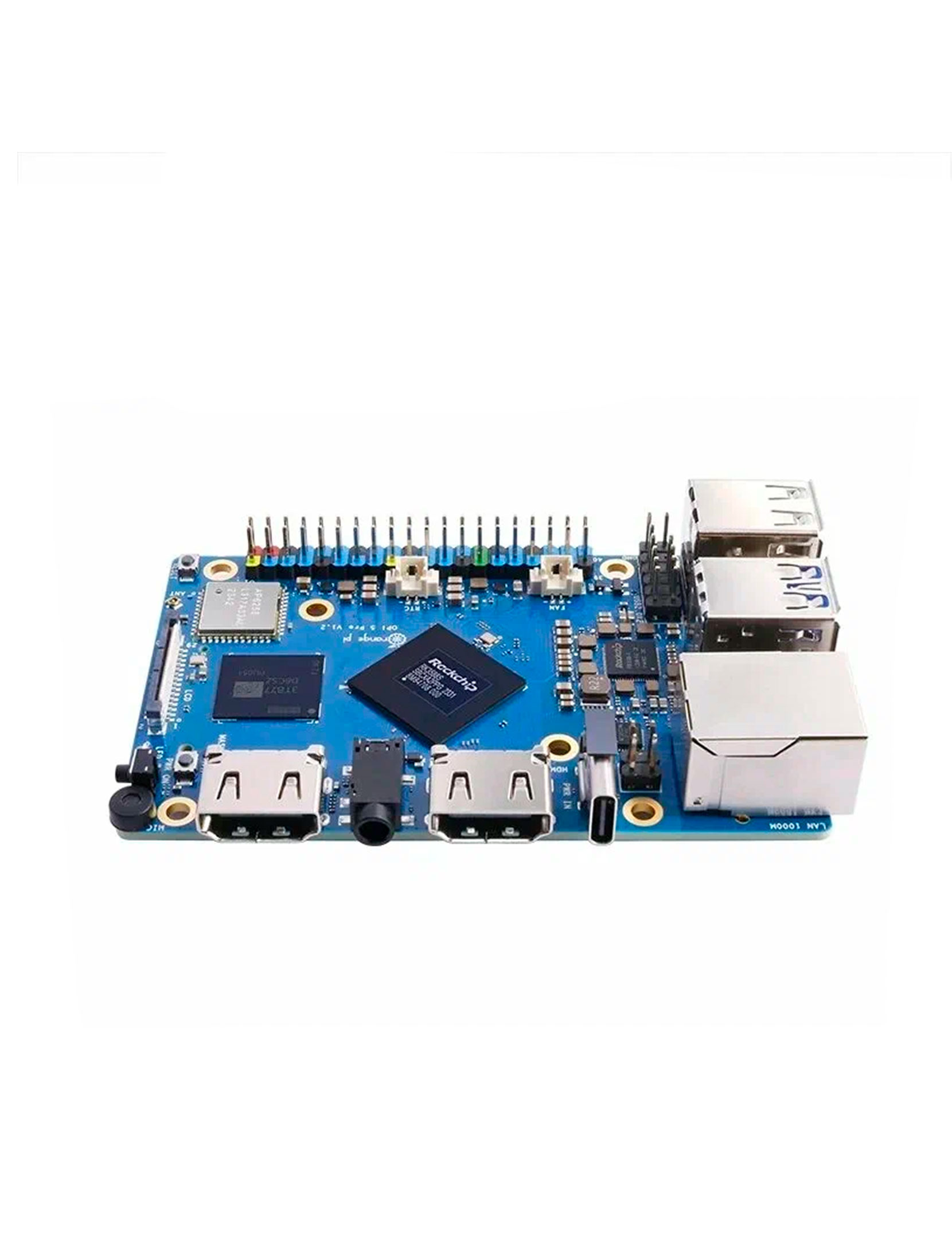 Orange Pi 5 Pro использует 8-ядерный 64-битный Процессор Rockchip RK3588S, четырехъядерный A76 + четырехъядерный A55, с 8-нм техпроцессом, основная частота до 2,4 ГГц, интегрированная рука Mali-G610, Встроенный 3D GPU, совместимый с OpenGL ES1.1/2,0/3,2, OpenCL 2,2 и Vulkan 1,2; Встроенный NPU поддерживает смешанные вычисления INT4/INT8/int16, С до 6 вершинами вычислительной мощности, Который может удовлетворить потребности большинства конечных устройств в конечных вычислениях; С 4 ГБ/8 ГБ/16 ГБ LPDDR5, с обработкой дисплея до 8K, И поддерживает модуль eMMC или SPI Flash (любой из них), Wi-Fi5, BT5.0 и поддержку BLE. Orange Pi 5 Pro обеспечивает множество интерфейсов, включая выход HDMI, порты GPIO, USB2.0, USB3.1, разъем для наушников 3,5mm, порт Гигабитного LAN с поддержкой PoE + (требуется PoE + HAT), И т. д, со слотом M.2 M-key, который поддерживает установку NVMe SSD или SATA SSD.