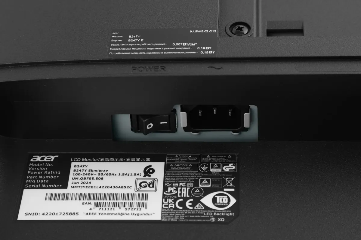 Монитор Acer Vero B247YEbmiprxv получил 23,8-дюймовый дисплей с FHD-разрешением и заявленной частотой 75 Гц (изображение получается четким и без размытия). За счет широкоформатного соотношения сторон удобно будет редактировать большие таблицы и создавать презентации. Матрица изготовлена по технологии IPS, что обеспечивает реалистичную цветопередачу и широкие углы обзора 178 градусов для комфортной игры и просмотра мультимедийного контента. Благодаря антибликовой матовой поверхности экран не будет бликовать при ярком искусственном освещении и дневном свете. А функция защиты зрения подавляет мерцание подсветки и помогает уменьшить усталость глаз при чтении текста.Модель укомплектована двумя цифровыми видеовходами DisplayPort и HDMI, а также имеет дополнительный аналоговый интерфейс VGA, что позволит подключить как современные, так и старые настольные ПК или ноутбуки.встроенные динамики;внутренний блок питания;четыре порта USB 3.2.Эргономичная подставка позволяет настроить оптимальное положение панели путем поворота влево-вправо, изменения угла наклона в пределах -5°/+35° и регулировки по высоте. Также можно установить ЖК-монитор вертикально для работы в портретном режиме (пригодится дизайнерам и программистам).