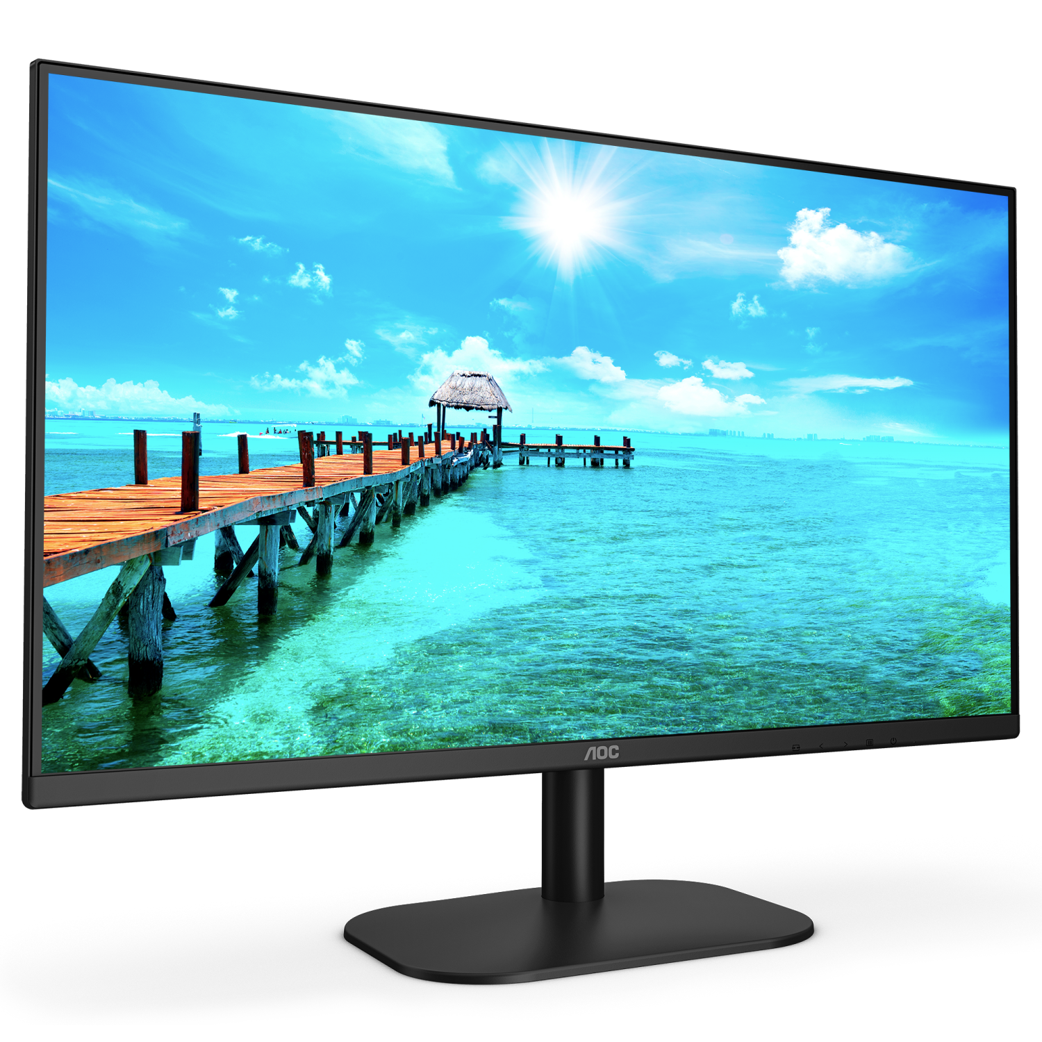 Монитор AOC Value Line – это офисная модель с большим экраном, которая будет удобна для решения рабочих и повседневных задач.Большая диагональ 27 дюймов обеспечивает крупный размер интерфейса и помогает комфортно работать в нескольких окнах. Разрешение Full HD (1080p) соответствует высокой детализации. Матрица VA с высокой контрастностью 4000:1 предлагает точную цветопередачу. Пиковая яркость 250 кд/м2 позволяет работать в различных условиях освещенности, а матовое покрытие имеет антибликовый эффект.При быстрой смене кадров контрастность повышается – динамический показатель достигает 20000000:1, поэтому цветовой диапазон становится еще шире. Частота обновления 75 Гц увеличивает плавность анимации и снижает нагрузку на зрение. Благодаря низкому времени отклика 4 мс задержка изображения будет незаметна.Монитор имеет функцию наклона на угол до 20° – он будет удобен пользователям с различным ростом. Для подключения к компьютеру можно использовать разъемы HDMI или VGA. Для вывода звука в конструкции предусмотрены стереодинамики мощностью по 2 Вт каждый и разъем mini-jack.