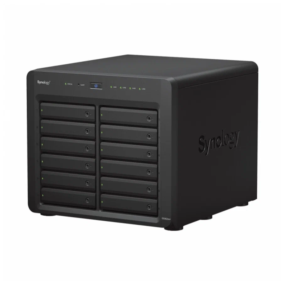 Сетевое хранилище (NAS) Synology DiskStation DS3622xs+ имеет настольное исполнение. Устройство ничто не мешает использовать не только в корпоративной среде, но и при оснащении домашнего офиса. Хранилище позволяет организовать скоростной отказоустойчивый удаленный доступ к очень большим массивам информации. Модель рассчитана на размещение 12 накопителей SATA, объем каждого из которых может достигать 16 ТБ. Можно задействовать не только жесткие диски, но и SSD. Поддерживается функция горячей замены.Хранилище рассчитано на организацию массивов RAID 5, JBOD, RAID 0, RAID F1, RAID 6, RAID 1 и RAID 10. Также возможно использование режима Basic, в котором эксплуатируется единственный HDD или твердотельный накопитель. Сетевое хранилище (NAS) Synology DiskStation DS3622xs+ защищено от перегрева благодаря наличию двух высокопроизводительных вентиляторов. Высокая эффективность отвода тепла крайне важна для стабильной работы накопителей. Максимальная скорость подключения хранилища к сети – 10 Гбит/с. Конфигурация устройства впечатляет: в наличии процессор Intel Xeon D-1531 и 16 ГБ ОЗУ.